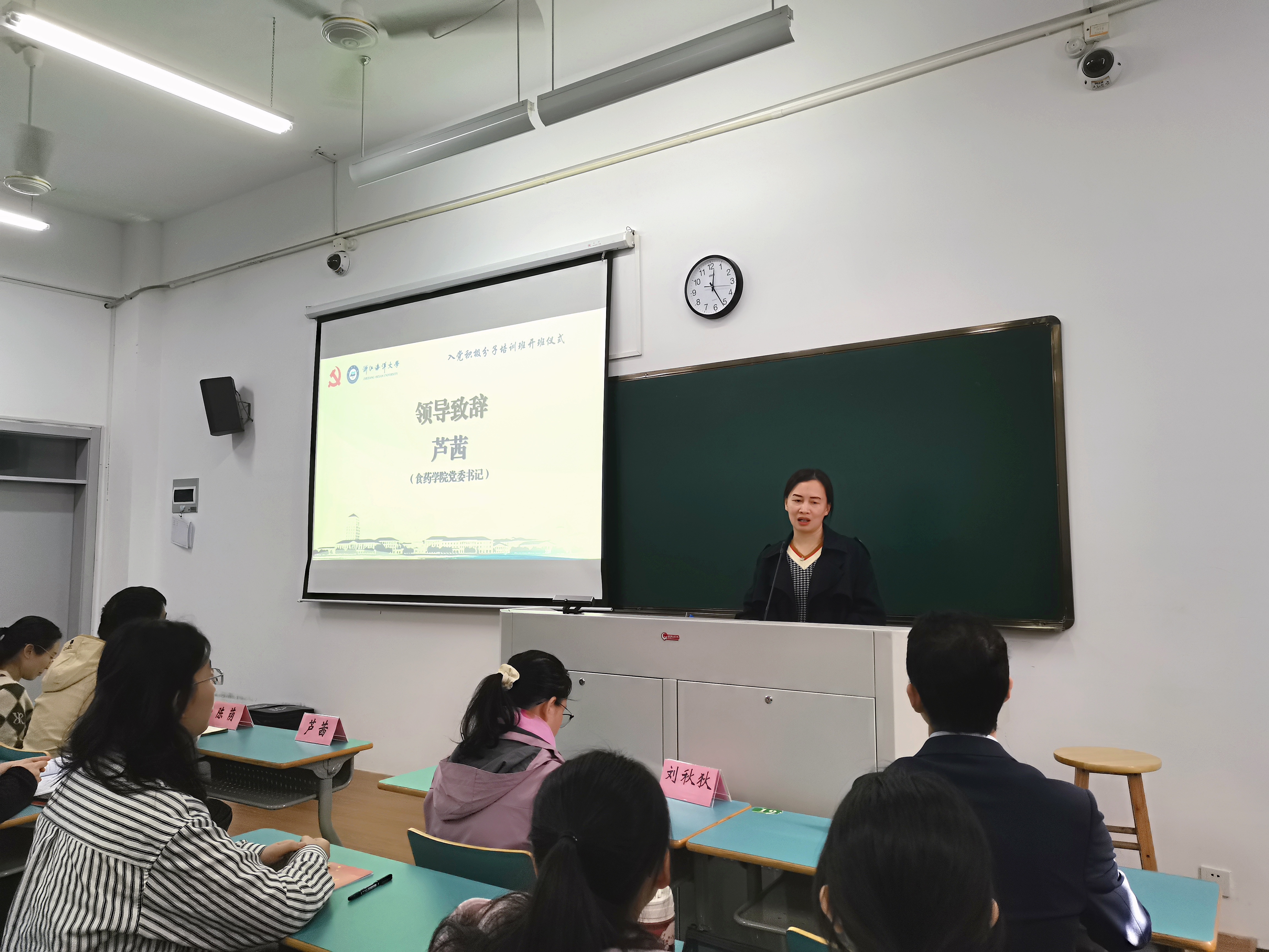 食药学院党委书记芦茜老师在致辞中对学员们提出了殷切期望,她希望同学们认真学习党的光辉历程、基本理论和路线方针政策,力求在学习过程中有所思考、有所领悟、有所收获。同时,要坚定共产主义信仰,树立正确的世界观、人生观和价值观,以实际行动积极向党组织靠拢,为实现中华民族伟大复兴的中国梦贡献自己的力量。