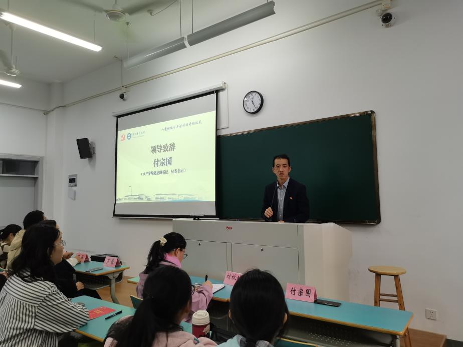付宗国老师代表水产学院党委向参加本期党训班的同学们表示热烈的欢迎和衷心的祝贺。他强调,新时代的大学生肩负着国家的未来与民族的复兴之重任,党训班作为同学们学习党的理论、了解党的历史、提高政治素养的重要阵地,期望全体学员能够以满腔的热情和严谨的态度投入学习之中。