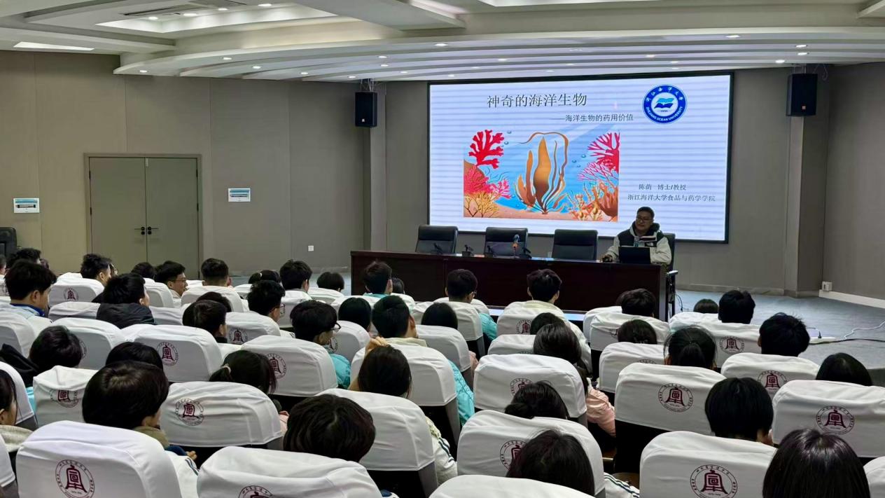 讲座伊始,陈荫教授以“蓝色的星球”为切入点,向同学们阐释了海洋生物资源对人类生存发展的重要意义,指出海洋不仅是食物的重要来源,更孕育着丰富的医药原料和工业原料,点燃了同学们对海洋世界的探索热情。