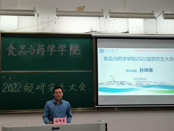 随后,由院长助理孙坤来老师进行发言。孙老师结合自身的读研读博经历,向新生传达了研究生如何学习的建议:多学习多动手,夯实基础;承上启下作用,深耕科研内容;做好榜样,顺利达成毕业要求。