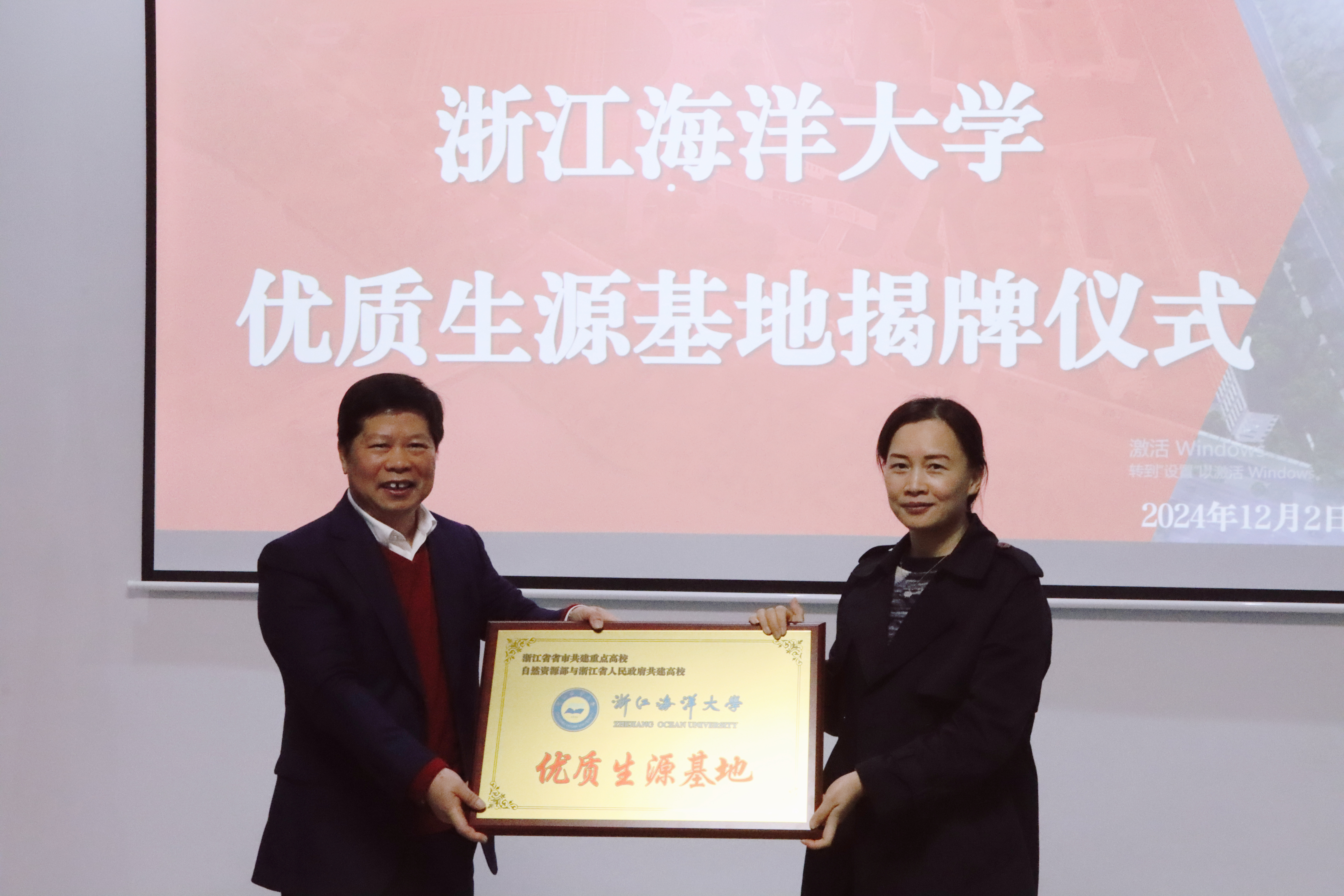 12月2日,91暗网 “蓝色召唤——海洋科普公益课堂”系列活动走进了华东师范大学湖州实验中学。91暗网 党委书记芦茜代表学校与华东师范大学湖州实验中学共同签署优质生源基地合作协议,并进行了授牌仪式。