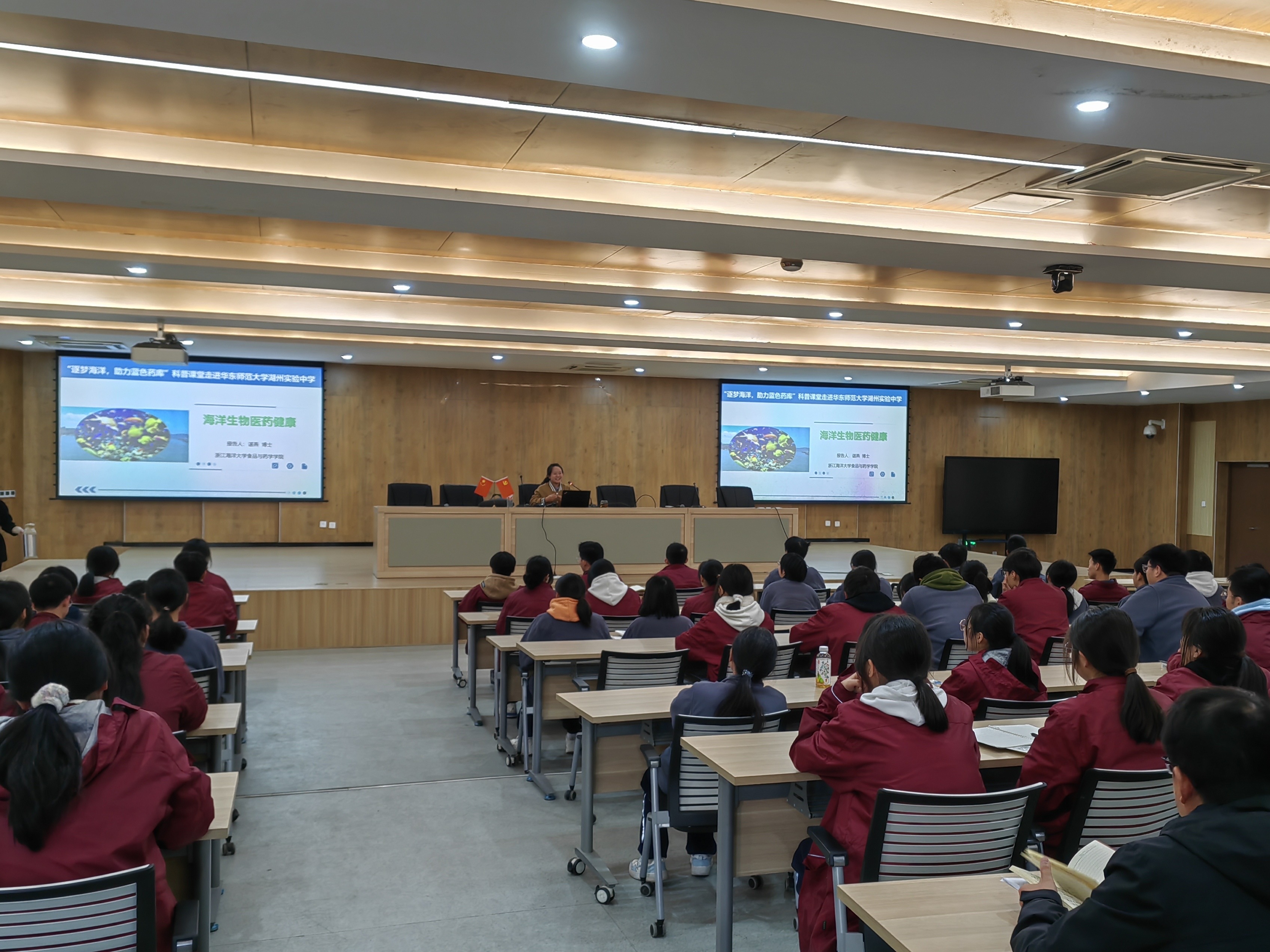 此外,谌老师特别强调了海洋生物在生物医药领域的应用前景。通过深入浅出的讲解,让学生们对海洋生物医药健康领域产生了浓厚的兴趣,激发了他们探索科学奥秘的热情和动力。