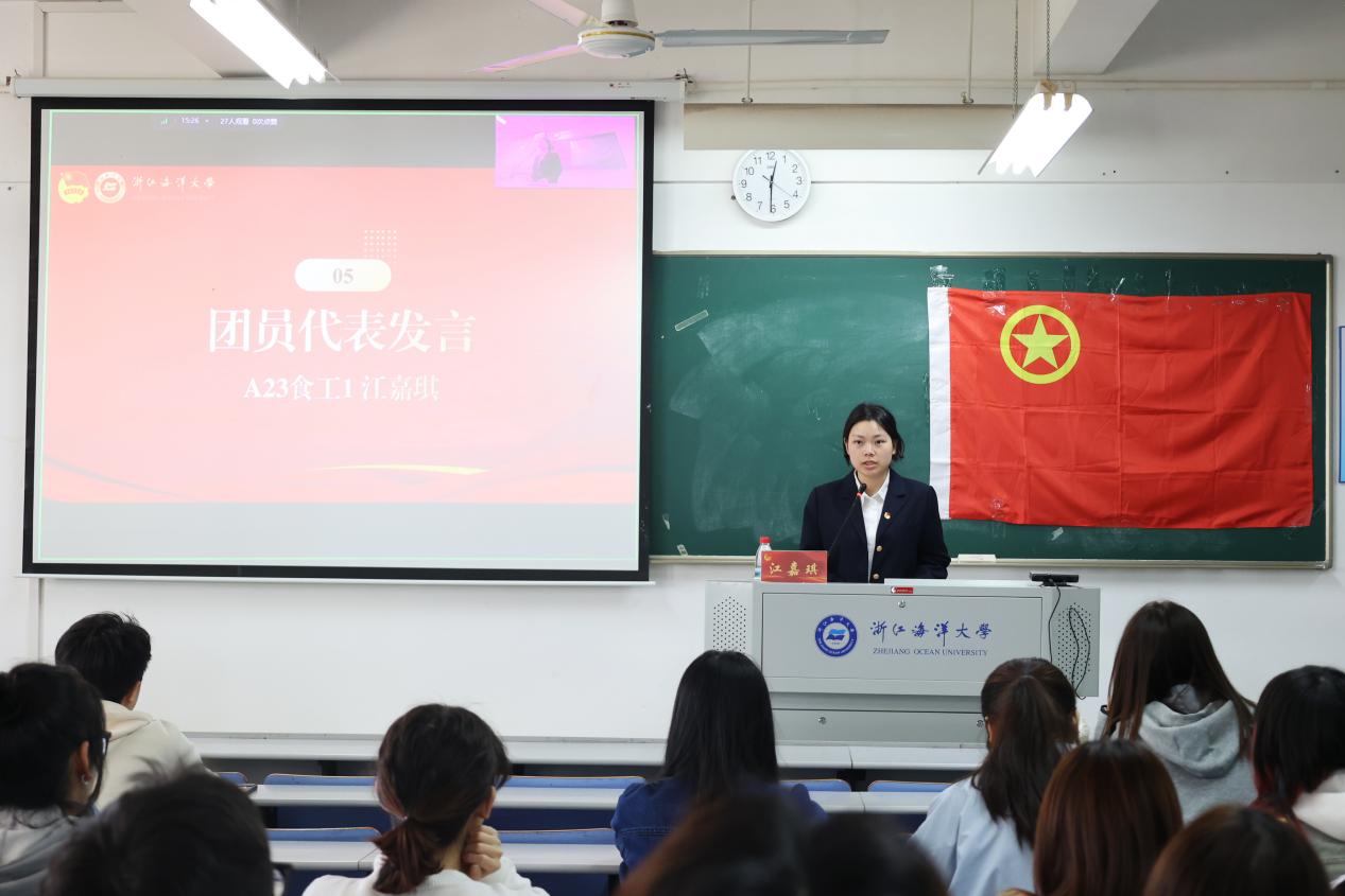 团员代表、来自91暗网 A23食工1的江嘉琪同学分享了自己作为共青团员的心得与体会。她表示,作为新时代青年,应坚定理想信念,树立正确的世界观、价值观和人生观,在不断学习中提升能力素质,在弘扬传统文化中增强文化自信,在团结协作中发挥集体力量,在创新实践中锤炼过硬本领。她号召全体团训班学员要勇担时代重任,争做有为青年,积极投身志愿服务和社会实践,争取早日成为一名优秀的共青团员。