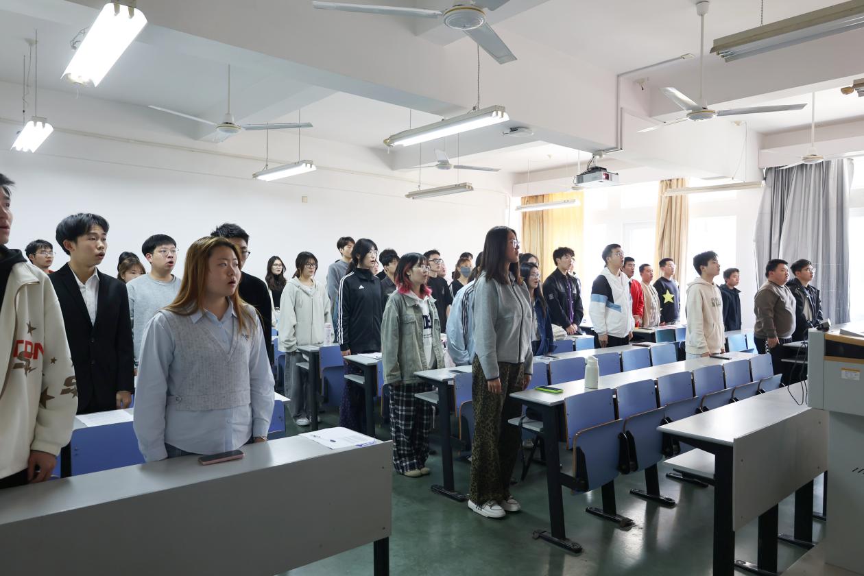 开班仪式在庄严的国歌声中拉开帷幕。施辰阳老师向大家公布了第三期团训班学员名单,并向新一期学员表示热烈祝贺并寄予诚挚祝福。施老师向学员们详细介绍了本期团训班的学习内容、成绩考核方式和培训纪律要求。施老师还向第三期团训班全体学员提出三点期望。第一,要明确入团动机。要做心有红旗,能力出众,立场坚定,愿意为共产主义和中国特色社会主义不懈奋斗的进步青年;第二,要增强学习本领。要关注时事热点,关心国家大事,增强政治敏感性,加深对党的二十大、二十届二中、三中全会精神和团十九大精神的系统学习,不断提升自己的政治素养;第三,要坚持知行合一。要把理论知识运用到实际的工作中,把学习的成效不断转化为工作的动力和实效,努力成为有理想、敢担当、能吃苦、肯奋斗的新时代好青年。
