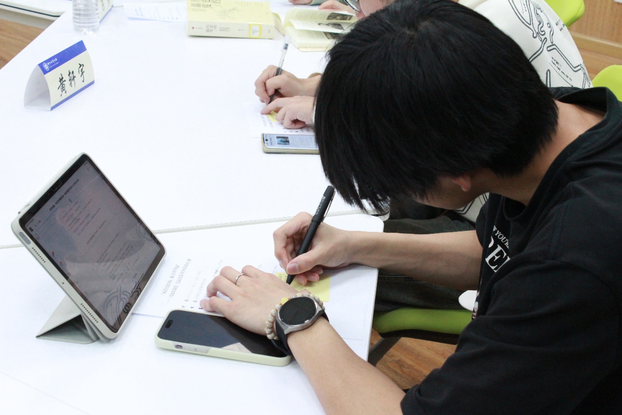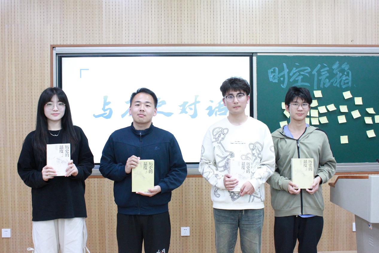 在“沉浸式思辩”环节,贾忠岩、毛俊杰、黄轩宇、毛瑜珊四位学员化身历史的“对话者”,围绕自己所对话的历史展开讨论,他们旁征博引、各抒己见,印证了历史人物本就多面立体,唯有从不同维度抽丝剥茧,方能还原其真实的血肉与灵魂。老师们结合自身读书感悟进行点评,并向分享的同学赠送《历史的温度》系列书籍作为鼓励。