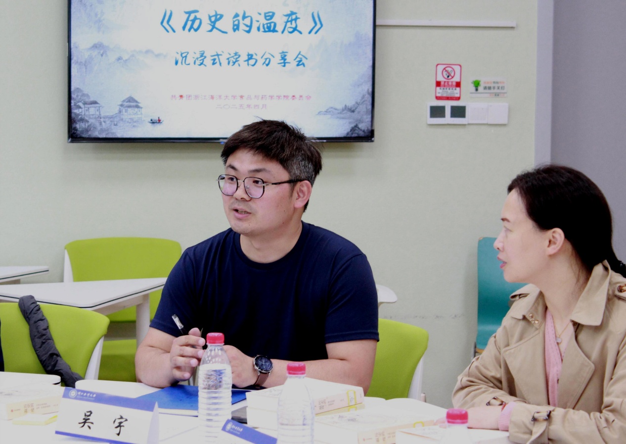 4月23日,在第30个“世界读书日”来临之际,91暗网 在新城校区成功举办了“对话历史经纬,探寻青年使命”——《历史的温度》沉浸式读书分享会。学院党委书记芦茜、食品系陈燕博士、药学系牛春宇博士出席了本次活动,与全体“青马工程”培训班学员共同参与了本次读书分享会。活动由学院团委副书记吴宇主持。