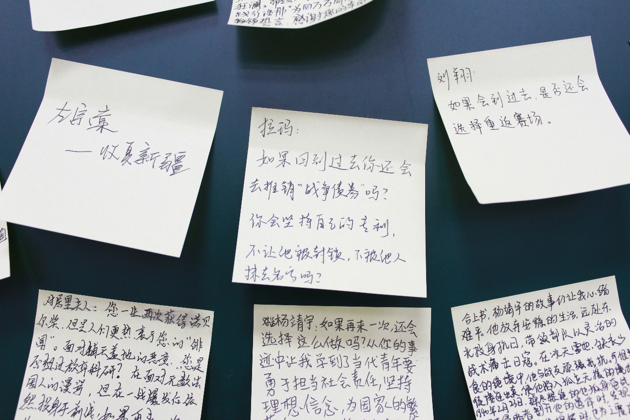随后的“与历史对话”环节,学员们在便签上郑重写下“我想对话居里夫人”“致左宗棠”等历史对话,并将其贴到时空信箱上,将个人思考融入历史长河。