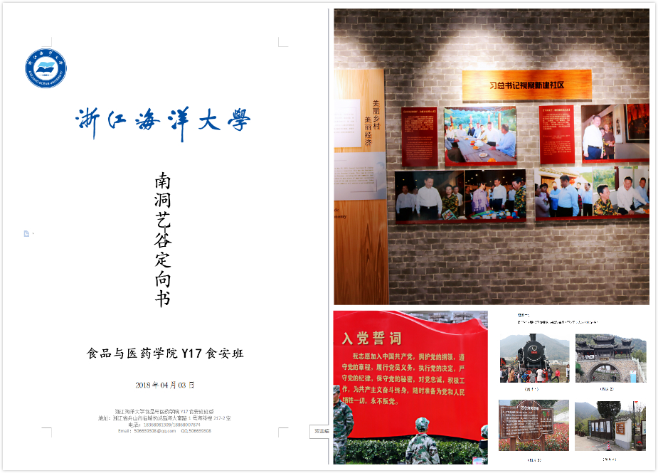 又是春暖花开的季节,又到油菜花盛的季节。南洞艺谷,又称太阳谷,坐落于舟山,2015年被评为“国家级美丽示范村”,“全国最美乡镇”,习近平总书记曾几次亲临。为深入学习贯彻党的十九大精神和习近平总书记系列重要讲话精神,通过重走习近平之路,理论与实践相结合,增加青年学子对乡村振兴战略和美丽乡村建设的了解。我院Y17食安班为此组织了“重走习近平之路”主题定向春游活动。4月3日,Y17食安班在班委的带领下,亲眼见证了这一“世外桃源”。