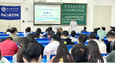 学院副院长陈 荫希望希望各位研究生充分利用当前平台和资源,珍惜时间,刻苦研究,学习知识,不断成长成才,在本专业留下自己的贡献。同时,开展研究生实验室安全教育,希望全体研究生遵守研究生规章制度,严格按照实验操作规定。