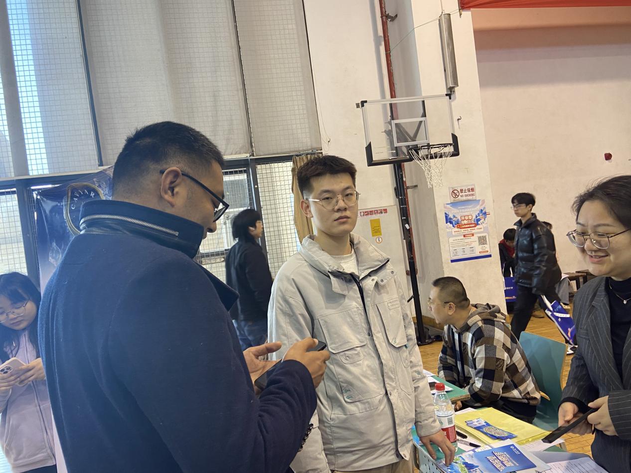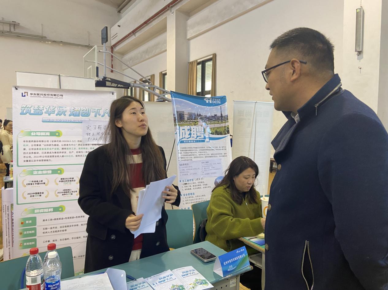 交流过程中,陈荫副书记向企业介绍学院学科特色、人才培养质量及2025届毕业生生源情况,并诚邀企业参与学院课程设计、实习基地建设及校园招聘会等活动。多家企业代表高度肯定学院学生的实践能力和职业素养,杭州中美华东制药有限公司招聘主管表示:“贵院学生专业扎实、动手能力强,与我们制药行业的岗位需求高度匹配。”本次行动同步关注毕业生就业进展与职业困惑。陈荫副书记与现场求职学生亲切交谈,了解求职意向、薪资预期及面试难点,鼓励毕业生把握春季招聘黄金期,树立“先就业、再择业”的理性观念。