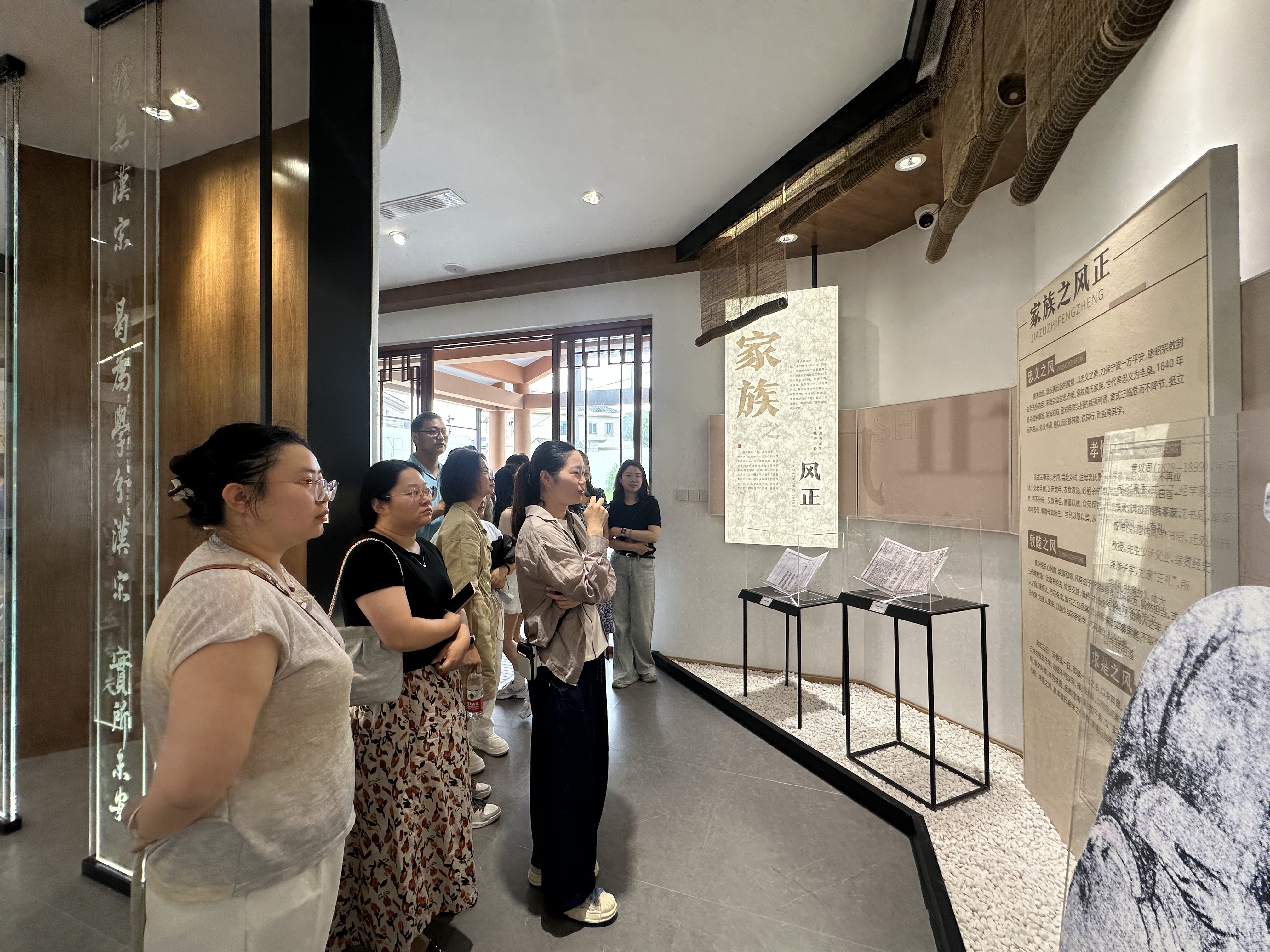年轻干部们依次参观“礼学第一村”“家族之风正”“浙东二通儒”“千徒出黄门”“定海文脉长”五个展厅。展厅内通过省内礼学点分布图、黄式三家族谱系脉络、黄氏家族学术成果等多个维度,全面展现了黄氏家族在礼学传承、学术研究及家风培育方面的深厚底蕴。