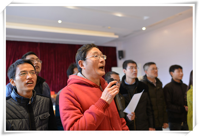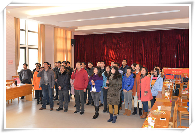 首先由学院院长邓尚贵教授致新年贺词,他向为学院的建设和发展而辛勤工作的教职工和家人表示由衷的感谢!他说“回首2014年,学院新增国家自然科学基金3项、新增省部级项目10项,到校科研经费500余万元;公开发表二级以上学术论文94篇(三大检索22篇(SCI一区1篇、二区7篇)、一级学报18篇);获得中国轻工业联合会科学技术进步特等奖、一等奖、二等奖各1项;获得国家专利授权48项(发明27项);新增省部级重点实验室1个。在省级成果奖、论文层次、授权专利等方面均取得较大突破……”。最后他祝愿全体教职员工在新的一年里,工作顺利、幸福安康,家庭和美。祝愿我们的事业蒸蒸日上、质量一流、业绩辉煌!