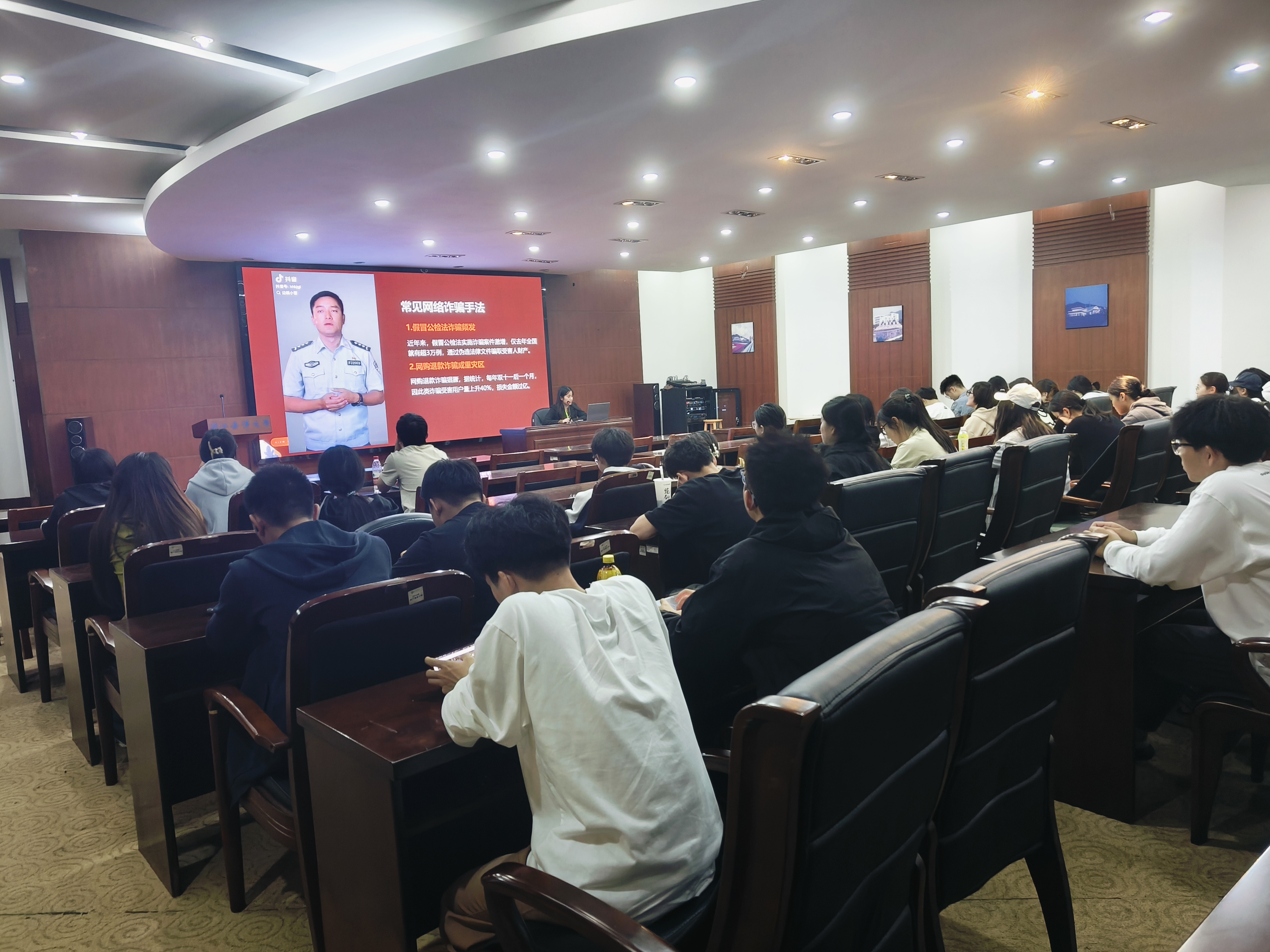 本次活动中,王景田同学讲述了如何识别网络诈骗手段和保护自己的财产安全,带领各位资助对象进一步了解诈骗心理,希望大家对陌生请求提高警惕。在活动尾声,同学们通过扫描二维码参与线上防诈骗答题,进一步提高了同学们对防诈骗的认识,清楚受骗后应采取的措施。