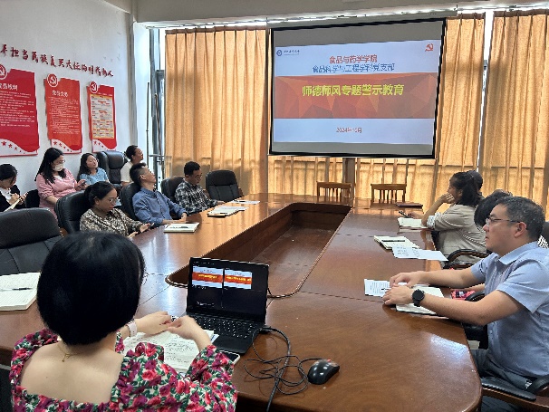 从9月10日至今,我院食品科学与工程学科党支部围绕“师德师风”建设主题,组织了一系列丰富多彩的学习活动,内容涵盖了观看历史纪录片《里斯本丸沉没》、学习师德师风相关制度、签订师德师风承诺书、开展师德师风警示教育、党支部书记上专题党课以及组织教师职业理想与职业道德讨论等多个方面,旨在全面提升教师队伍的职业道德水准和教育教学质量。活动自启动以来,得到了广泛的关注和支持,参与热情高涨,现正如火如荼地进行中。