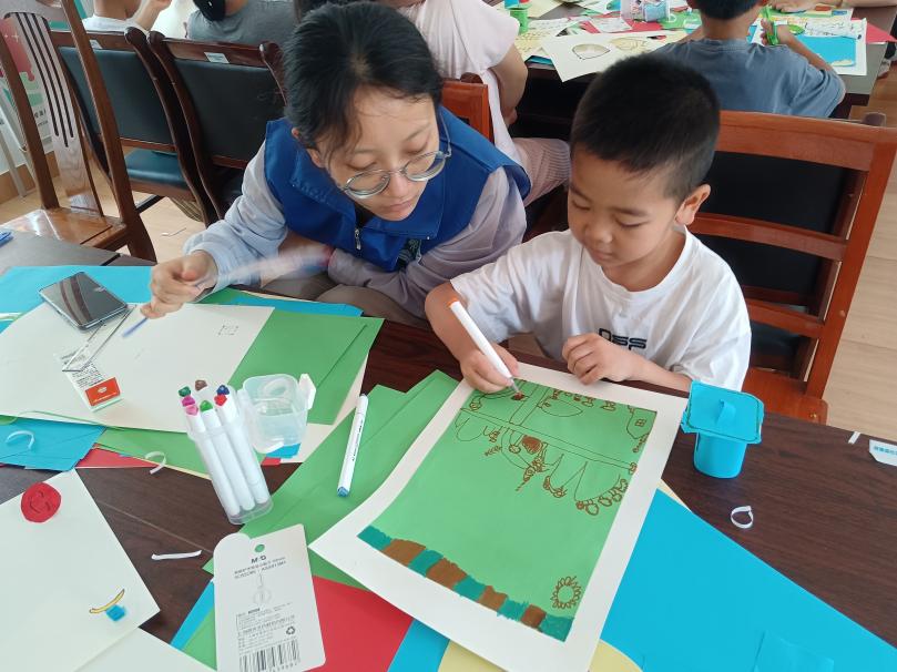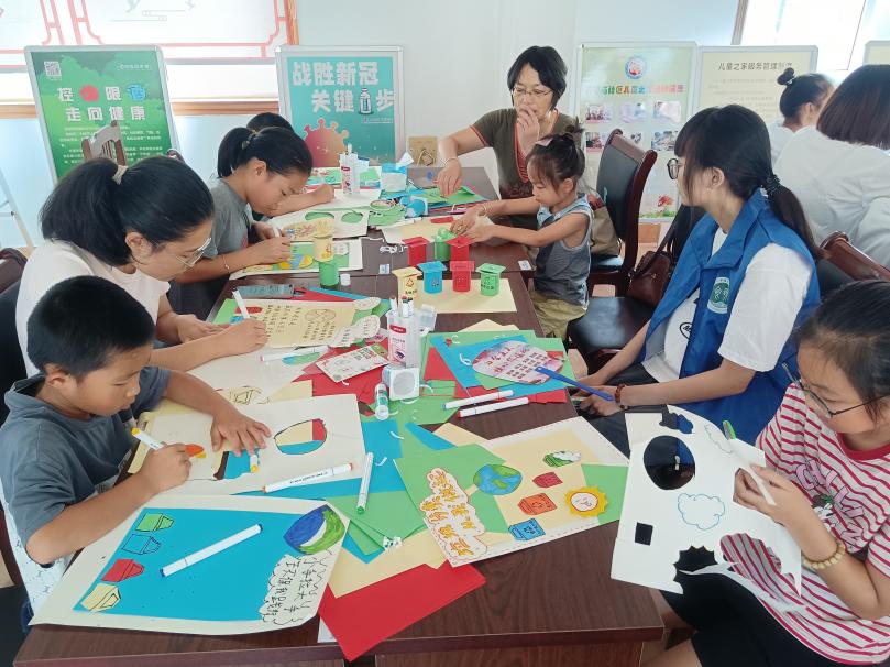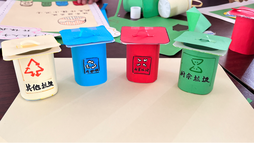 在讲解环节结束后,党支部成员喻正颜、高丹丹、闻慧等同学带领大家制作了简易垃圾桶和垃圾分类手工画,进一步增强了青少年垃圾分类、变废为宝的意识。