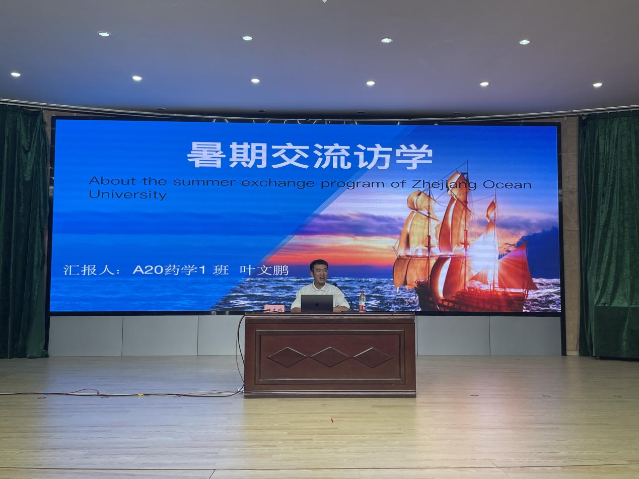 为进一步介绍暑期访学项目,促进人才培养的国际化,9月21日下午,我院于定海校区活动中心二楼会议大厅举办了“访学经验交流分享会”。本次活动邀请了A20食工1班吕佳颖和A20药学1班叶文鹏两位同学为大家介绍访学活动的具体情况。