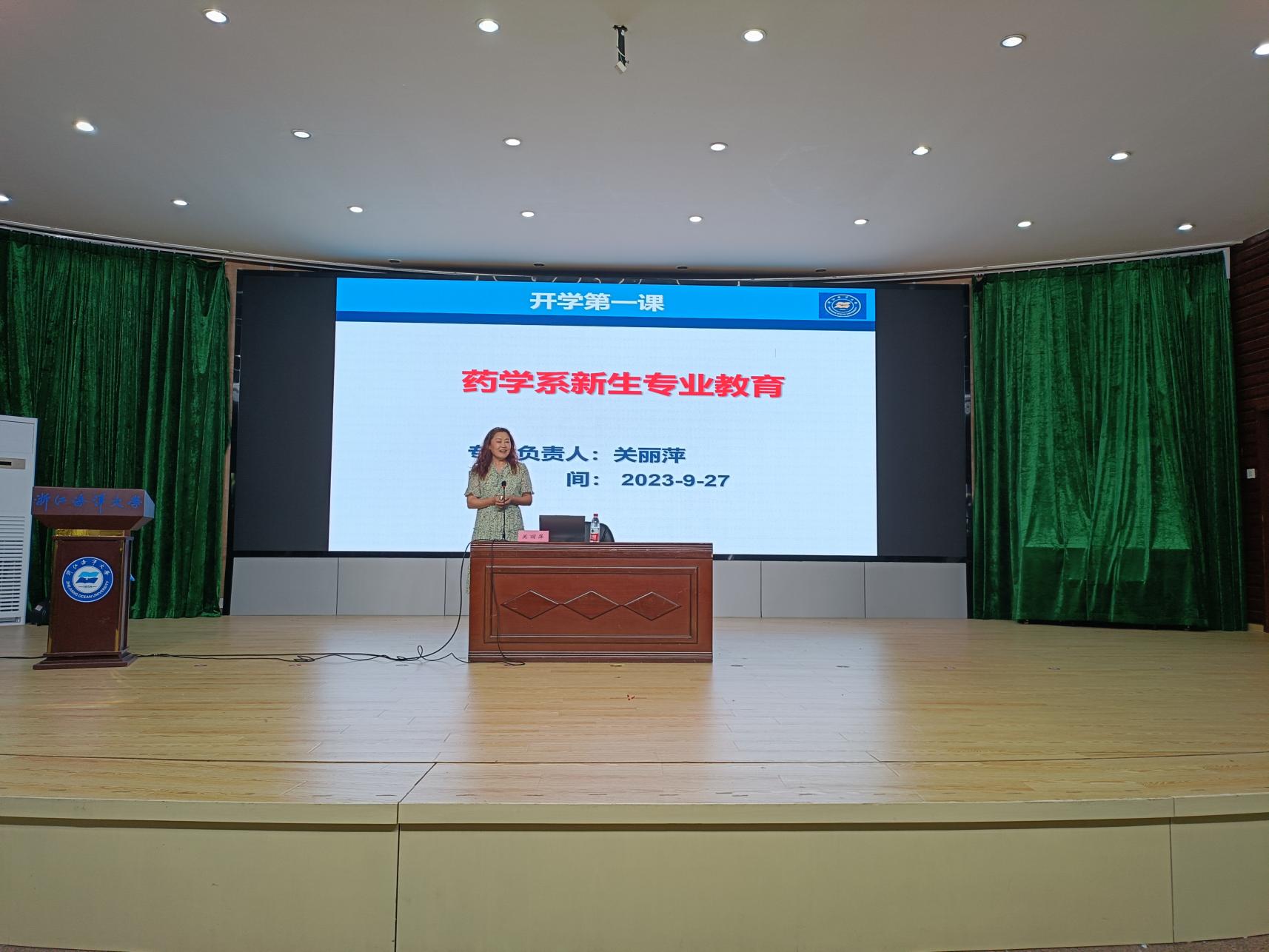 为帮助同学们更好了解药学专业的特点、就业前景等方面,2023年9月27日,由药学系主任关丽萍教授主讲的药学系专业讲座在活动中心二楼举行,2023级全体药学系学生参会。