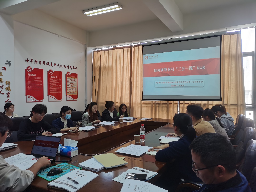 吴宇老师带领学习党员发展工作指南,梳理党员发展过程中的各个时间点和注意事项,让大家对入党流程有了清晰明确的了解。研究生支部陈晓云同学对于如何规范书写“三会一课”进行了讲解。