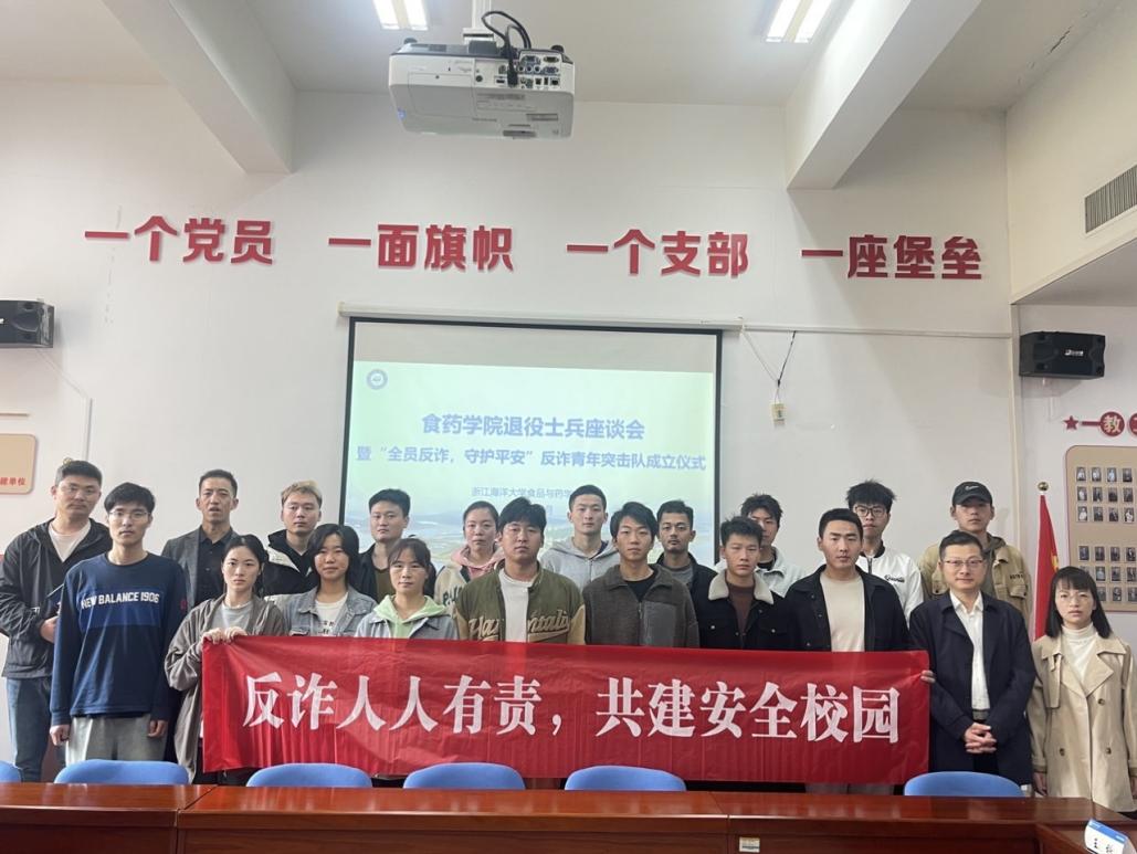 2024年4月11日下午,91暗网 在海科楼141会议室召开了退役士兵座谈会暨“全员反诈,守护平安”反诈青年突击队成立仪式。食药学院党委副书记、纪委书记王旭明,食药学院学工办主任付宗国,食药学院团委负责人吴宇,食药学院辅导员周筠青,以及各退役士兵学生出席座谈会。
