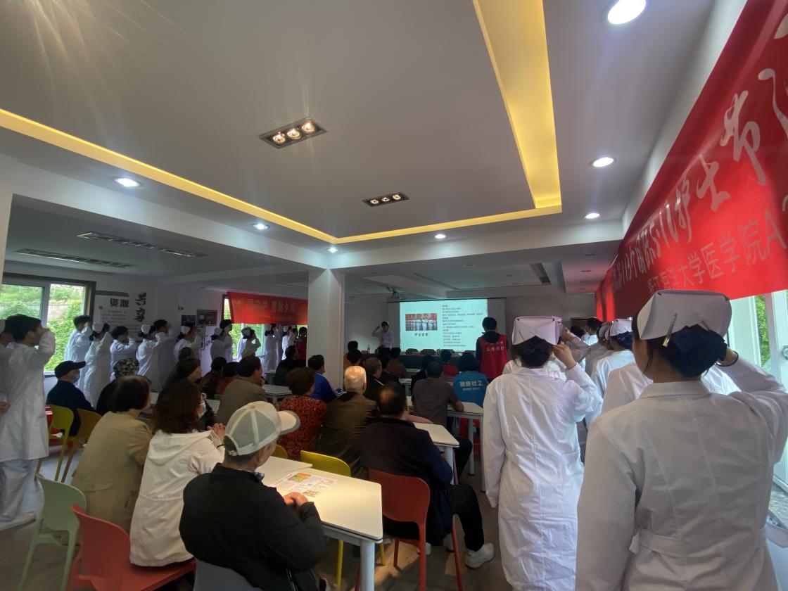 医学院常务副院长竺静为大家进行了健康知识讲座,通过案例分析、发病前兆以及预防等方面,为大家系统地讲述了阿尔兹海默症的相关知识。现场,还向大家传授了“手指操”,帮助老年人预防阿尔茨海默病。