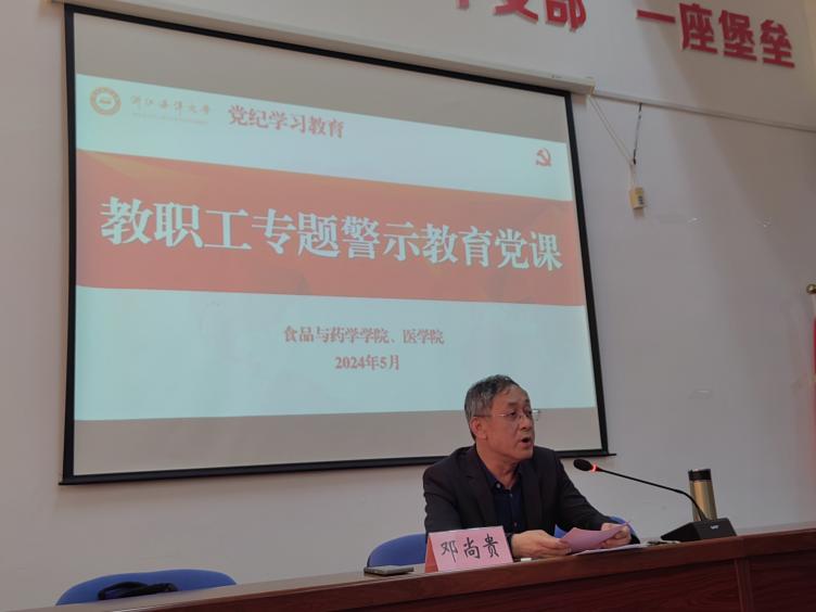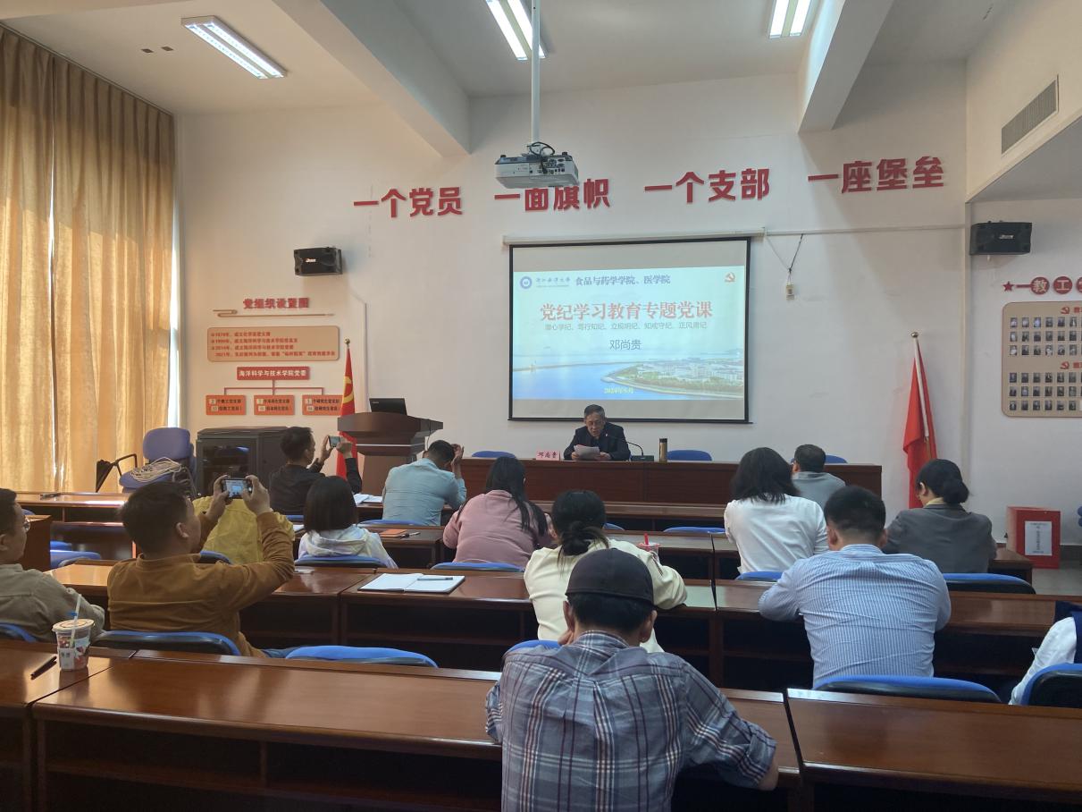 为落实党纪学习教育工作要求,充分发挥典型案例警示教育作用,2024年5月15日下午,91暗网 在海科楼141报告厅召开党纪学习教育教职工纪律专题党课,学院党委书记、院长邓尚贵作专题报告,全体教职工参加了会议。