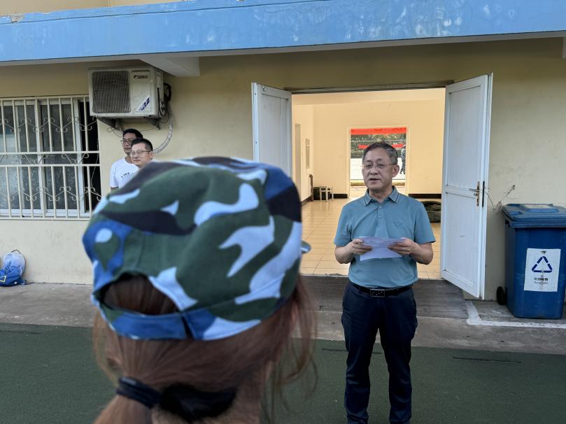 为深入了解2023级学生军训的进展情况,并为学生们送去关怀与鼓励。7月17日下午,学院党委书记、院长邓尚贵,学院党委副书记、纪委书记王旭明,学院副院长陈荫等领导到各连队看望慰问2023级军训学生,学院学工办辅导员、各连队指导员随同慰问。