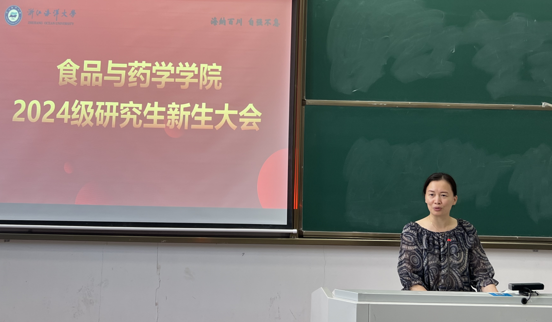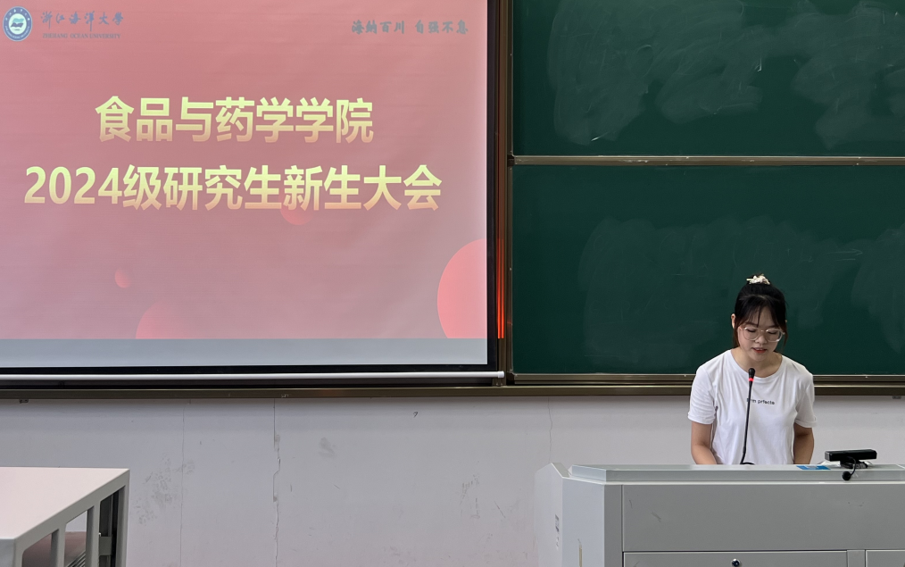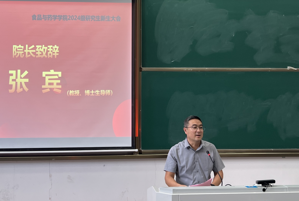 张宾院长在新生大会上致辞,欢迎来自全国27省份的170名精英学子加入学院大家庭。他强调,新同学的到来为学院注入了新活力,共同开启学术探索新篇章。他向同学们介绍了我校的办学历史和发展特色,特别强调了学院在科研、教学和人才培养方面所取得的进步。他寄语研究生新同学:一是深耕专业,追求卓越。要勇于挑战自我,不断突破自我限制,实现自我超越。二是崇尚科学,坚守道德。以严谨态度推动学科进步;三是团结协作,共同成长。珍惜同窗情谊,共创佳绩;四是明德砺志,知行合一。将个人理想融入国家发展大局,践行校训精神。最后,张院长勉励新同学们怀揣研究热情,立足学科前沿,解决实际问题,在不懈奋斗中实现人生价值,为海洋食品与药学领域的发展贡献力量。