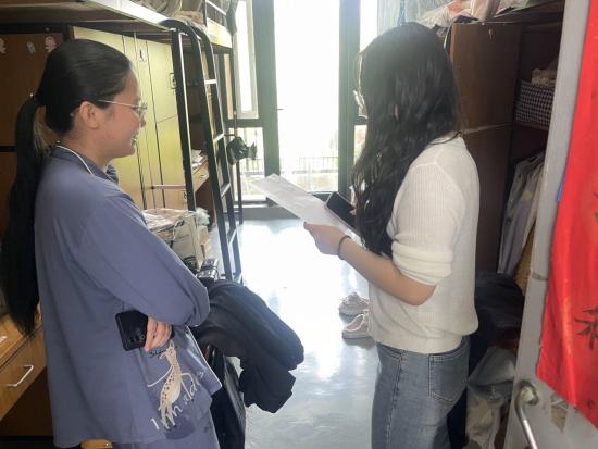 走访过程中,陈荫副书记与辅导员们走进毕业生寝室,亲切询问同学们的毕业进展、就业去向、升学规划及生活近况,倾听他们在毕业论文答辩、求职面试、科研实验等环节中遇到的困难,并现场协调资源、提供建议。陈荫副书记强调:“学院始终是大家的坚强后盾,无论是就业渠道拓展、深造院校联络,还是职业规划困惑,都可以随时与辅导员或学院沟通。”还勉励毕业生们要以积极心态迎接挑战,在未来的岗位和学业上发扬学院优良传统,展现青年担当。