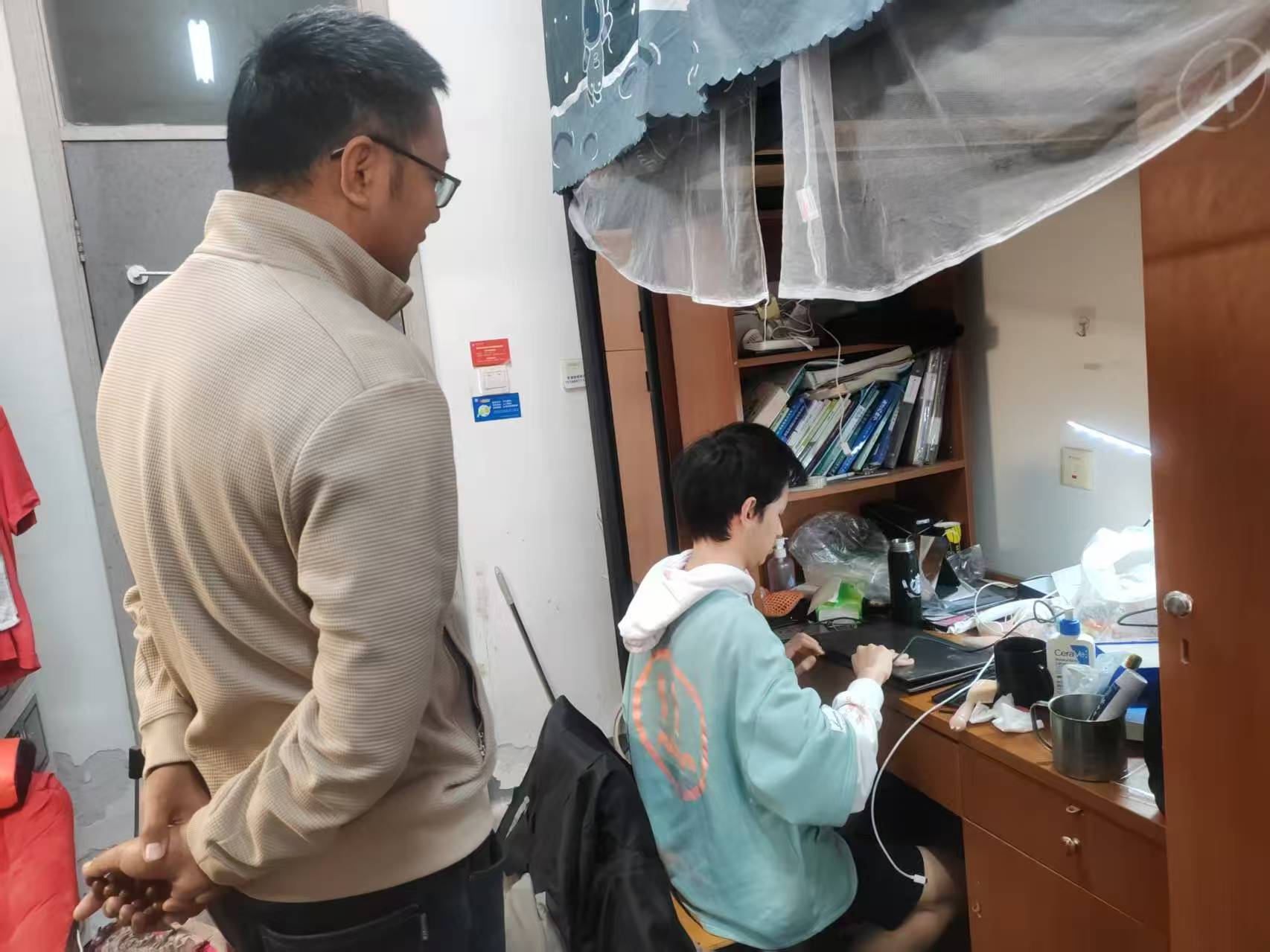 学院党委书记陈荫走进定海校区寝室,他鼓励低年级本科生珍惜时光、参与实践、提升能力。他尤其关注同学们的职业规划,建议同学了解市场需求、结合专业与行业趋势,根据自己兴趣优势鉴定职业生涯目标。