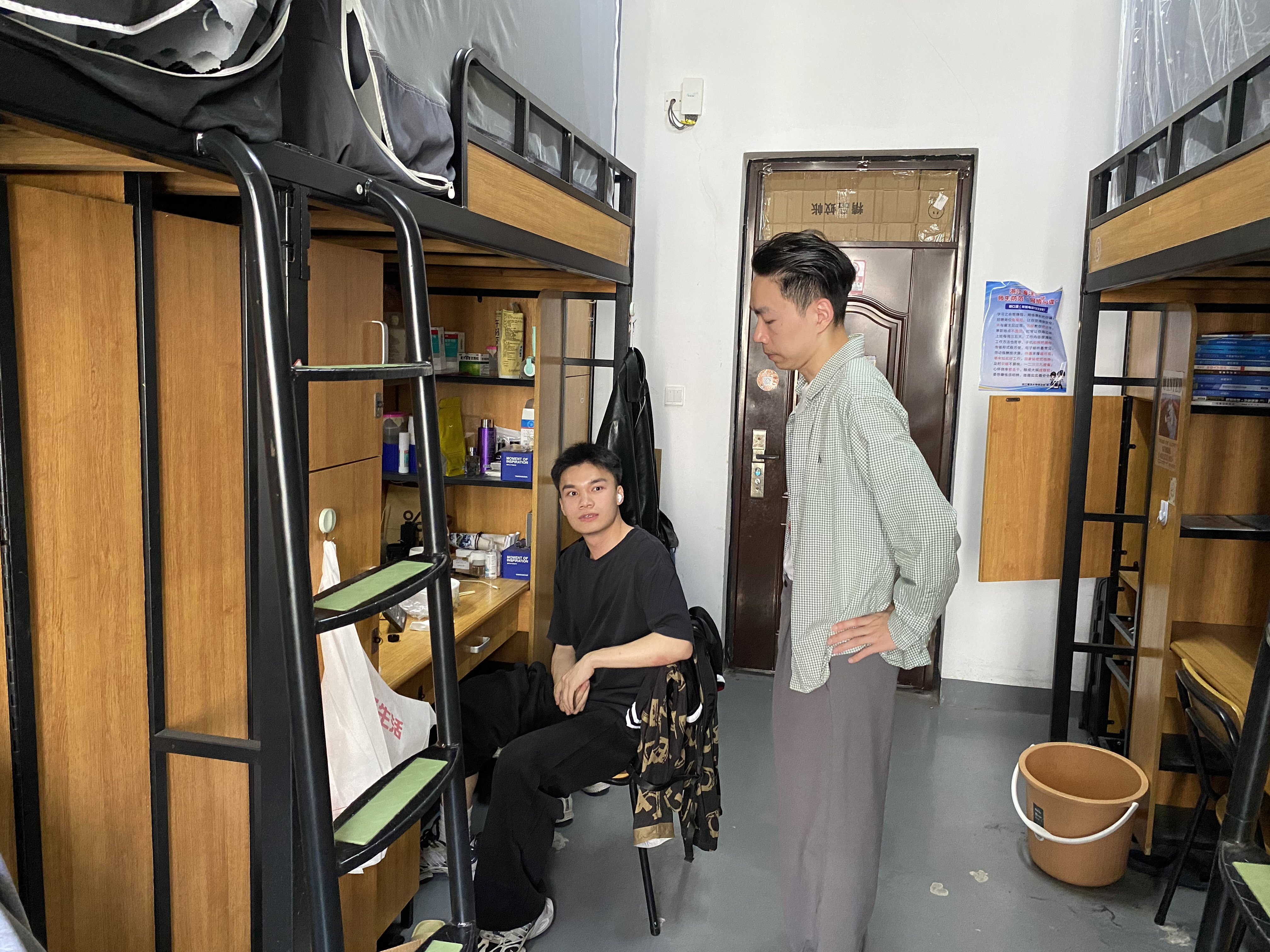 余星增老师走访Q幢毕业班寝室,与同学们交流近期就业情况,对于毕业班学生就业难点疑点认真聆听,耐心解答。关于近期新宿舍楼建设噪音问题,余星增老师表示会及时反馈同学们反应的问题,为同学们创造舒适的生活环境。