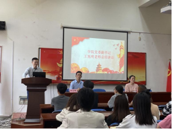仪式最后一项,学院党委副书记王旭明老师为本次党课总结讲话。他为在坐的同学们提出了四点建议:一、不仅要加强专业课学习,还要进一步加强党史的学习;二、要加强纪律,严格要求自己;三、行动上要快,积极行动,毫无怨言;四、希望大家作为共青团员标兵,争取早日加入党组织。