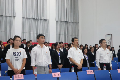 正式会议在嘹亮的国歌声中拉开帷幕。学院党委副书记王旭明致辞,对本次学生代表大会的胜利召开表示祝贺,肯定了全体工作人员的工作成绩,并对接下来的学生会工作提出相应的意见,他表示,新一届学生会要坚定不移的坚持学生会的政治性,应进一步维护好同学们的合法权益,针对学生会的日常工作需以学生为中心进行改革,以普通同学的满意度作为学生会工作成效的标准,鼓励大家不断进步。