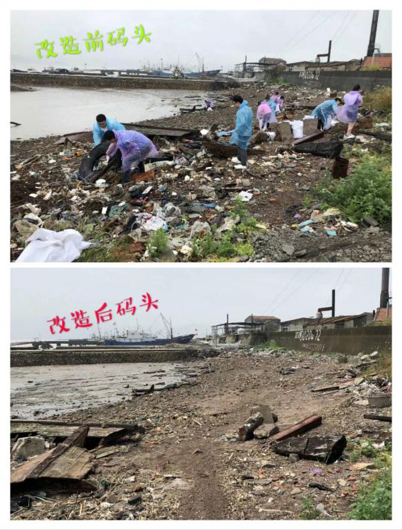 参观了人民公社后,同学们一行来到蚂蚁岛的码头,这片地域受历史原因和地形因素等,大型机械暂时无法介入,生态环境恶劣,改造难度巨大,然而同学们并没有丧失信心,反而热情极其高涨,共产党人就是要不畏艰险,勇往直前。同学们齐心协力,迅速投入改造进程中,经清理后的码头焕然一新。
