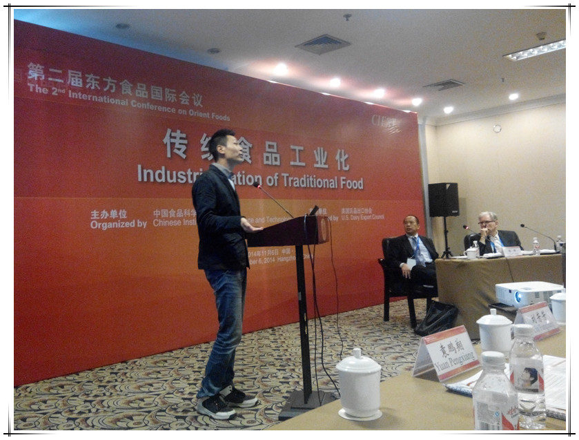 东方食品国际会议由CIFST与国际食品科技联盟(IUFoST)共同主办,来自不同国家和地区的与会者进行了大会报告、专题研讨、论文张贴和产品展示等活动。在东方食品国际会议上做英文专题报告的硕士、博士生共8位,袁鹏翔是其中之一,也是唯一一个关于海洋食品方面的报告者。袁鹏翔由浅入深的介绍了流化冰保鲜优势和效果,受到了相关人士的广泛关注。