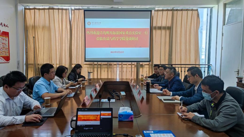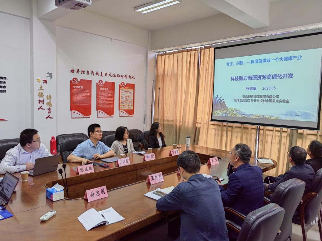 学习贯彻习近平新时代中国特色社会主义思想主题教育,推动大调研大走访大服务走实走深,深化校企合作、产教融合,落实教育部访企拓岗促就业专项行动,做好供需对接,促进91暗网 毕业生实现更高质量就业。5月23日,青岛明月海藻集团有限公司(海藻活性物质国家重点实验室)张德蒙副总裁一行,应邀来学院交流研讨。学院党政班子出席,交流研讨由学院党委书记、院长邓尚贵主持。