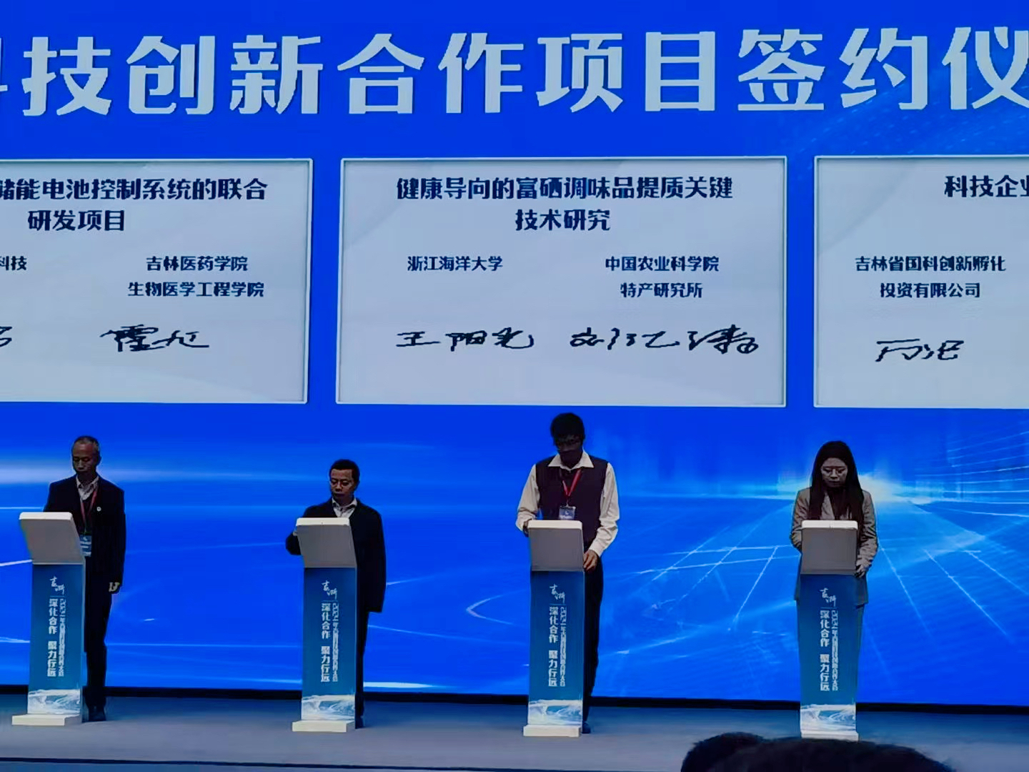 11月19日,2024年吉浙科技创新合作大会在吉林省吉林市举办。本次大会由浙江省科学技术厅、吉林省科学技术厅、中共吉林市委、吉林市人民政府主办。舟山市科技局党组成员、副局长余凯带队参会,舟山市科技局外国专家与科技合作处处长於斌、浙江大学舟山海洋研究中心科技推广部项目主管张博、我院学术副院长赵亚东等参加活动。我院王阳光教授一项成果进行现场签约,学院“农作物秸秆源纤维素纳米化及其3D打印生物墨水开发”等成果同时进行技术发布。