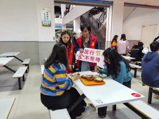 “一粥一饭,当思来之不易,半丝半缕,恒念物力维艰。”活动过程中,他们先后来到食堂等餐饮服务经营单位,向经营者、消费者发出制止餐饮浪费,培养节约的习惯倡议,高举宣传标语,提醒就餐师生,合理就点餐、杜绝浪费。向他们耐心地讲解勤俭节约是中华民族的传统美德,餐桌文明更是文明城市的缩影。同时,呼吁经营者转变经营理念,提供多样化、精细化就餐选择;向师生宣传“适量点餐、珍惜食品、剩餐打包”的节约理念,营造文明用餐、浪费可耻、节约为荣的社会氛围。