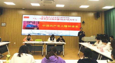 为扎实开展开展习近平总书记在庆祝中国共产党成立100周年大会上的重要讲话精神(以下简称“七一”重要讲话精神)暨党史、新中国史、改革开放史、社会主义发展史(以下简称“四史”)系列专题宣讲工作,10月17日下午,食品系学生党支部举行“四史”专题党课,支部书记付宗国主讲《中国共产党人精神谱系》党课。