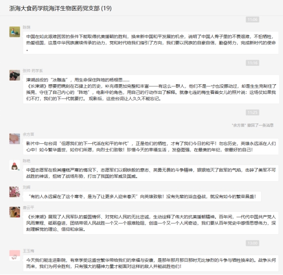 这场观影是一堂生动的爱国主义与党史学习教育课程,从不同程度体现出战争的残酷及志愿军战士个个铁骨铮铮,无畏熊熊战火,奋勇保家卫国,视死如归、舍身忘死的爱国主义精神及革命英雄主义精神,给党员们带来心灵的震撼和思想的洗礼。