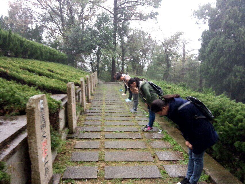当天下午,一行人来到了海山公园烈士陵园。天空小雨淅沥,正所谓青山有幸埋忠骨,烈士墓前祭英魂,周围苍松翠柏,显得愈加庄严。大家迈着沉重的步伐,为烈士们清除杂草并敬献鲜花,瞻仰这些光荣的英雄。肃穆之后,大家重温了入团誓词,重温了党的光辉历史和革命传统,最后同学们依次参观了烈士纪念馆和忠魂堂,缅怀革命先烈,接受爱国主义教育。
