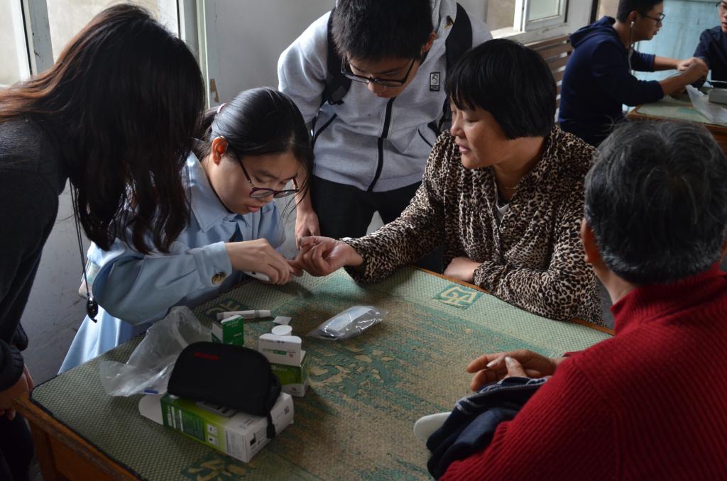 周日早上9点,学院学生党员、入党积极分子和青志协会组成了一支强大的志愿者队伍,他们一行带着血压计、血糖仪等医疗设备和一些水果来到了马鞍村老年活动中心,在村干部的协助下,老年活动中心渐渐聚满了老年人们,伴随着老人们和蔼的面容与开心的笑声,志愿者们认真地为爷爷奶奶们量了血压、测了血糖,并耐心地告诉爷爷奶奶平时要多注意饮食、食物清淡、注意休息等等。在爷爷奶奶坐着等待的同时,志愿者们也为他们准备了新鲜的水果和各种小节目,在冬日的阴雨天为他们带去一丝温馨、一丝幸福。