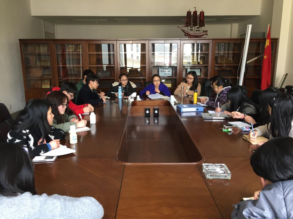 3月11日中午12点15分,食品与医药学院第二次团学例会在海科楼228顺利进行。出席本次例会的有食医学院分团委负责人蒋雅美老师及食医学院团学主席团,到场还有各部门干部。