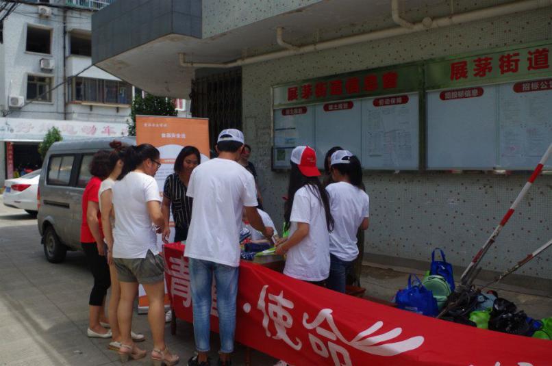 九点半,实践团到达了普陀区展茅街道大展社区,在社区有关负责人的帮助下开始设点宣传。