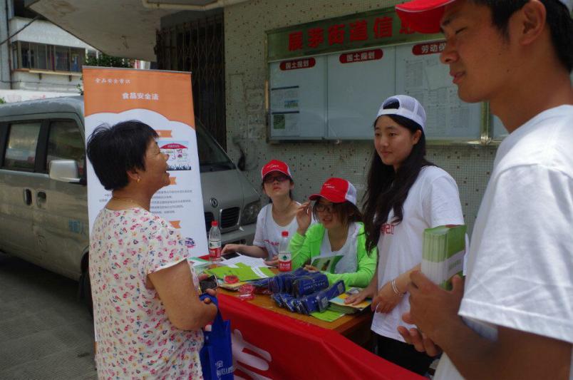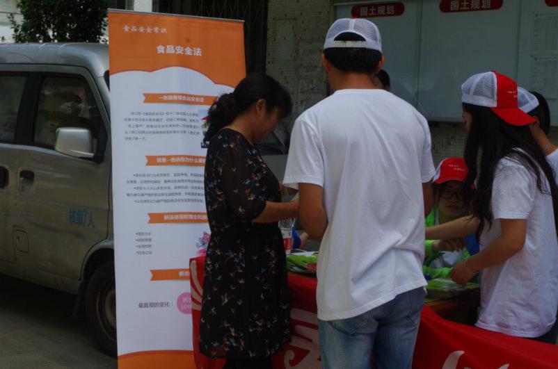活动过程中,不停的有居民来向我们咨询一些家庭常见的食品安全问题,团队成员们利用自己所学的食品专业知识以及了解到的食品安全的相关法律法规,进行多方面、多角度、多视角的宣传食品安全,每次解说完后,团队成员们都会向前来咨询的群众赠送宣传手册、餐具以及削皮刀等纪念品。现场的群众也纷纷向团队成员们表达感谢,并对此次活动赞赏、肯定。