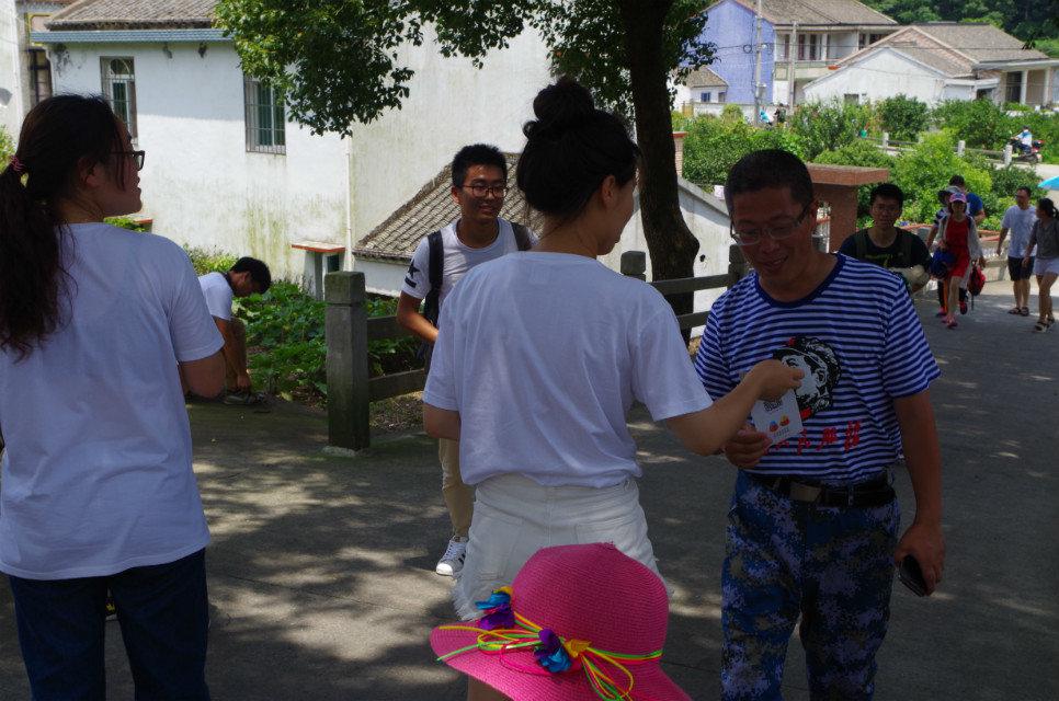 早上八点半,队员们乘坐公交车从学校前往干施岙。到达目的地后,队员们便立即在当地人流量较多的地点进行设点。经过一番准备工作,“海味方舟Squad”的宣传点正式搭建完成。许多前来观光旅游的游客来到了宣讲点,队员们用简要的语言将常见的食品安全讲述给游客,并在结束后分发了食品安全知识的书籍及食品安全宣传手册,在宣讲过程中,不少游客进行了提问,队员们都一一进行了解答。经过设点宣传,游客们各个受益匪浅,都十分感谢队员们的艰辛付出。下午,几名队员来到景点各处,分发宣传手册,游客们纷纷驻足对手册内容进行学习。为了方便游客更好地学习食品安全知识,队员们向他们推荐了浙江食品药品监管的官方微信和app,游客可以通过官网的学习,掌握更多食品安全知识。还有部分队员走进了几家渔农家乐,向渔农家乐的工作人员分发食品安全知识书籍,提出了一些常发生的食品安全问题,并告知他们对应问题的解决办法。渔农家乐的工作人员在经过学习后,对食品安全有了更加深入的了解,表示会保证自家的食品安全,积极响应国家的食品安全政策。
