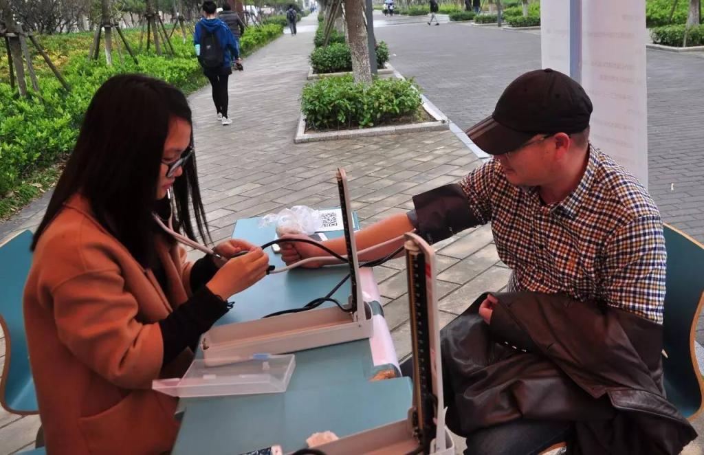 为了增强活动的趣味性,使更多的同学参与进来。活动在设点处设置了抽奖环节,只要答对食品安全问题,就有精美礼品相送。同学们对食品安全宣讲会很感兴趣,有很多同学驻足听讲并且参与问答抽奖环节。 除了食品安全宣讲会之外,志愿者们还为同学们义务测量血压,告诉了他们一些和血压有关的健康小知识,还教了有兴趣学习测血压的同学如何测量血压。