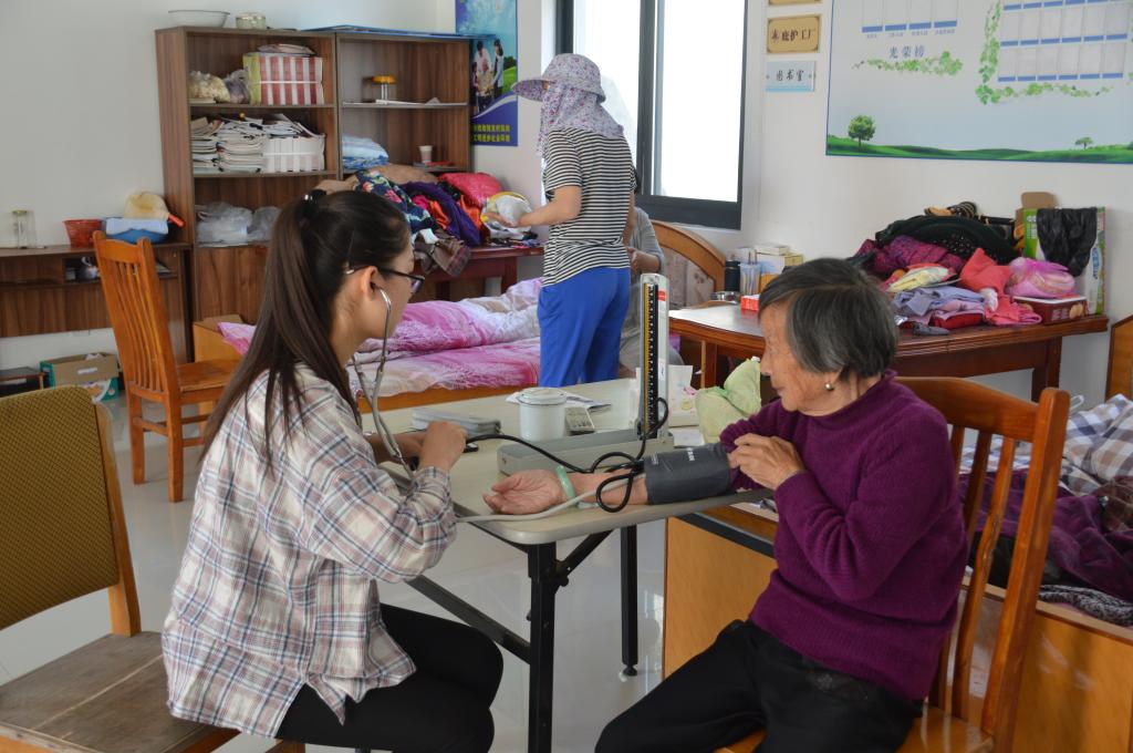 14日早上,志愿者们乘车来到大展敬老院。进入敬老院,志愿者们亲切地与老人们问好。接下来,志愿者们分工明确,有的为老人们测量血压,有的测量血糖,对有些行动不方便的老人,志愿者带着仪器进入老人们居住的房间为其测量血压和血糖;有的陪老人下下象棋;有的将带来的水果给老人;有的则陪老人聊聊天,在交流中,志愿者们也向老人们和敬老院中照料老人起居的阿姨宣传了一些关于食品药品食用上的小知识。