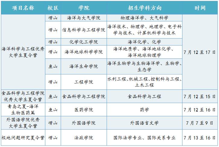 中国海洋大学将通过夏令营提前进行推荐免试研究生和“创新人才培养专项”计划研究生的选拔工作。