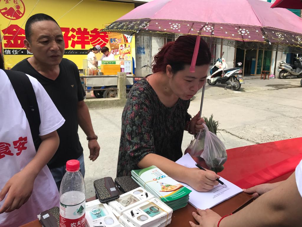 为了更加深入地了解居民们对食品安全谣言的辨识能力,“食安E动队”设计了两份调查问卷,“对食品安全谣言的辨识的调查”和“健康饮食常见误区的调查”。成员们将调查问卷发放给路过的居民们,居民们对食品安全也是非常地重视,很乐意协助填写调查问卷。