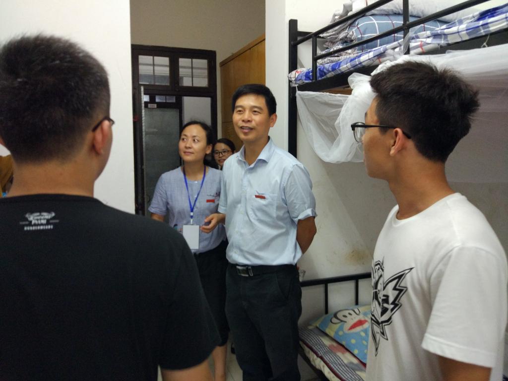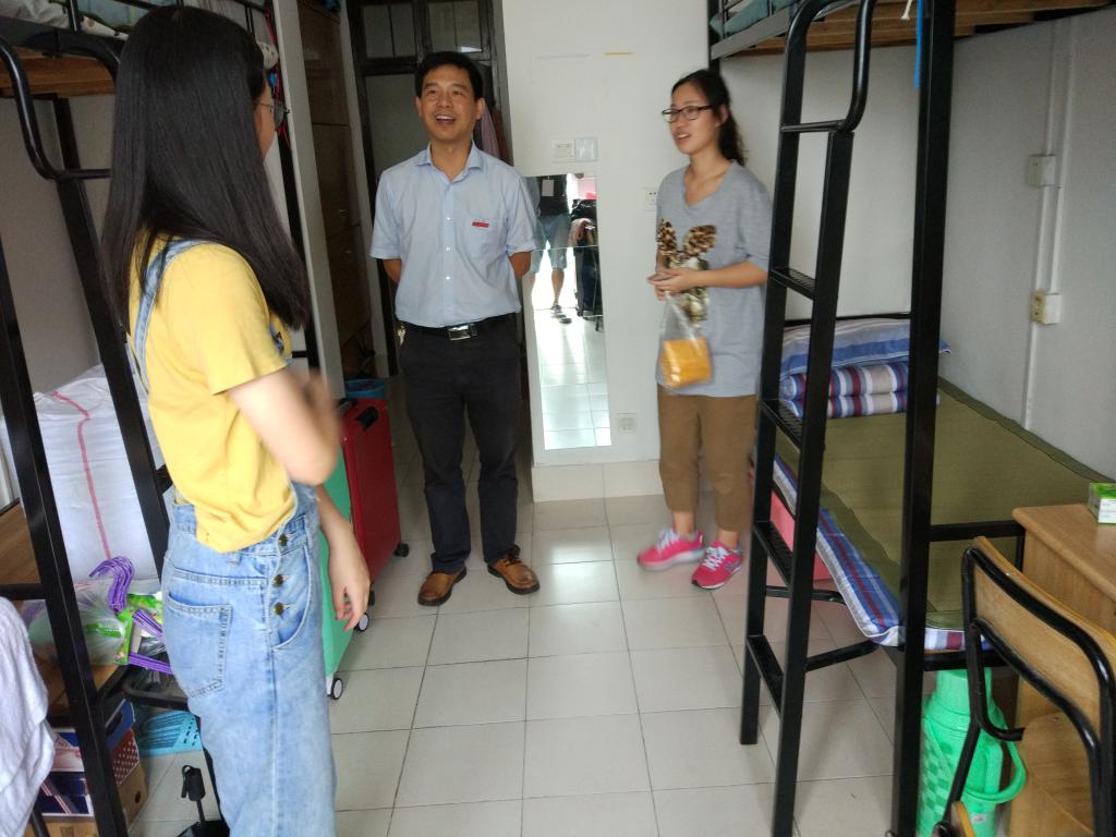 到达新生寝室后,虞书记仔细询问了新生的到校情况,并与同学们交流了户籍、住宿饮食习惯、空调租赁费用等问题,细心地嘱咐了到校学生出行一定要注意安全。期间,虞书记还同家长做了愉快的交谈,温和地解答家长的疑问,让他们放心,他们的子女一定能得到良好的教育。